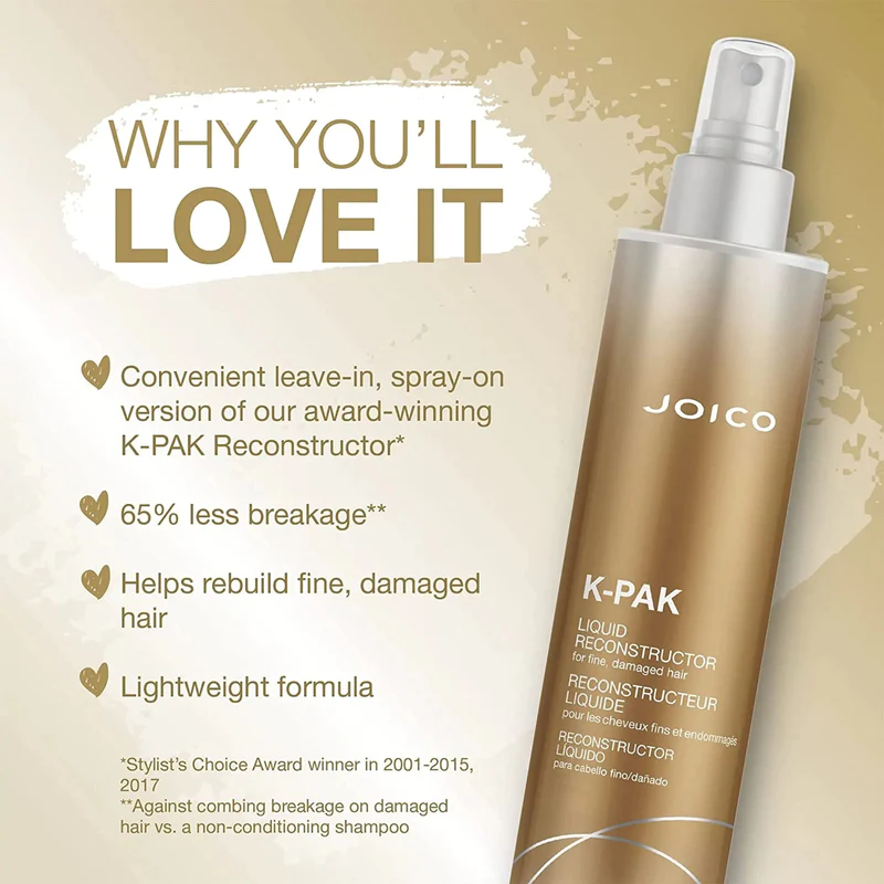 - Praktisk leave-in spray & flytende versjon av vår prisbelønte K-PAK Reconstructor